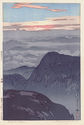 Hiroshi Yoshida was trained in the Western oil painting tradition, which was adopted in Japan during the Meiji period. Yoshida often used the same blocks and varied the color to suggest different moods. The best example of such is 'Sailing Boats' in 1921. Yoshida’s extensive travel and acquaintance with Americans influenced his art considerably. In 1931 a series of prints depicting scenes from India, Pakistan, Afghanistan, and Singapore was published. Six of these were views of the Taj Mahal in different moods and colors. At the age of 73, Yoshida took his last sketching trip to Izu and Nagaoka and painted his last works The Sea of Western Izu and The Mountains of Izu. He became sick on the trip and returned to Tokyo where he died April 5, 1950 at his home. He was buried at Ryuun-in Temple, Kosihikawa, Tokyo.