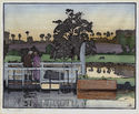 Returning to London, he was appointed to the position of inspector of all art schools in the South of England. Fletcher also was head of the Art Department of University College, Reading, between 1898-1906, where he taught woodcut artist Allen Seaby. He was appointed to the prestigious position of Director of the Edinburgh College of Art in 1907. In 1916 Fletcher’s treatise, Wood-Block Printing, was published in London, the first mass printing in English of the technique of color woodcut. Many aspiring woodcut artists took guidance from his book in setting up a studio and printing.
