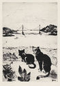 Elizabeth de Gebele Ginno, dancer, painter, printmaker, draftsman, and administrator, was born in Plumstead, England on 8 July 1907, arriving early to American parents who were visiting family. Her parents, John William and Leonore Freda (Hermann) Ginno, were both dentists. She was raised in Berkeley, California and became a drama major at Mills College in Oakland where she met Imogen Cunningham and Roi Partridge. She also studied at the California College of Arts and Crafts and the California School of Fine Arts and also studied etching and drawing with John W. Winkler. According to the US Census of 1930, she was married to Carol Parsons Aronovici, Jr. Aronovici was a make-up artist, costumer, actor and set designer and together they established Stagecraft Studios in Berkeley, a theatrical supply business. The couple divorced in 1934.