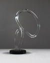 12-5/8 h. x 7-3/4" w. x 3" d. mounted on a 3/4 x 4-3/4" round black acrylic base.