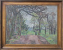 This impressionist oil was done by Danish painter Carla Colsmann Mohr. Mohr co-founded the "Women Artists Society" in 1916 and was considered part of the Odsherred Painters from Odsherred, in Zealand, Denmark. The painters here rediscovered Naturalism and Figurativism, exhibiting in Copenhagen. The Odsherred Painters were also known as "Morkemaleme" (The Dark Painters) because of their somber palettes, which later became brighter and more impressionistic.