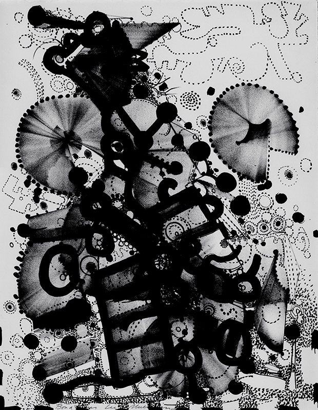 In 1964 Lee Mullican did a series of lithographs at Tamarind which evolved into 2 portfolios, "Fables", a suite of 12 lithographs, including a colophon and title page, and "Hungry Ghosts" also a suite of 12 lithographs, also including a colophon and title page.