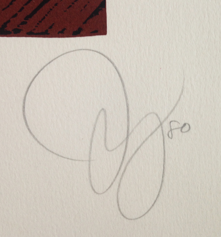 This color abstraction by Jack Youngerman was done using screen printing in 1980. It is from an untitled portfolio of 8 images, each printed in different colors and numbered A - H. The work is a collaborative effort between Youngerman and printer Roni Henning at Henning Screenprint Workshop, in Brooklyn, NY. Henning is an early proponent of non-toxic ink screenprinting.