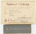 old AAA label: typed title, artist name, medium, and annotation "Restrike", signed by Sylvan Cole