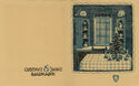 This was the first holiday greeting card released by Gustave and Jane Baumann. It features their dining room and Baumann’s German-influenced cabinets.