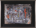 Nack was influenced by Klee, Kandinsky, Miro and the Surrealists, who drew on ancient civilizations, as well as 16th century music notes and cave paintings. This 1951 early Surrealist painting combines intricate painting and drawing done with many layers of glazes and using ground marble and glue, achieving depth with the feeling of collage. The result is a complicated and intriguing work of art that presents the viewer with a composition of fresh color and linear movement. A visual mystery that is never fully solved.