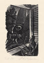 Executed for the wartime volume issued by Random House in 1944, this is one of several novels Eichenberg illustrated. He was drawn to the works of authors whose works meditated on the drama of the human condition: Dostoyevsky, Tolstoy, the Brontes, Grimmelhausen, Poe, etc. Here, his signature exaggeration of features, made stark with the use of heavy contrast, compliments Poe's style. Each finely detailed illustration, within a relatively small format, carries its own impact. Between four and ten unnumbered proofs were pulled for each woodengraving.