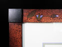 The wood picture frame for this work was handpainted by the artist and frequent collaborater of Packer's, Hildy Henry (American: 1929-2019). Henry was a Sonoma County-based artist, educator, and author of Faux Finishes: Decorating Techniques in Non-Toxic Materials (1986, Painting Peasants, Santa Rosa, CA). Her interest European folk arts led to her create her Arts-and-Crafts style picture frames. Packer was one of Henry's main professional partnerships, working with her to create work-specific frames from the mid 1980s through the late 1990s.