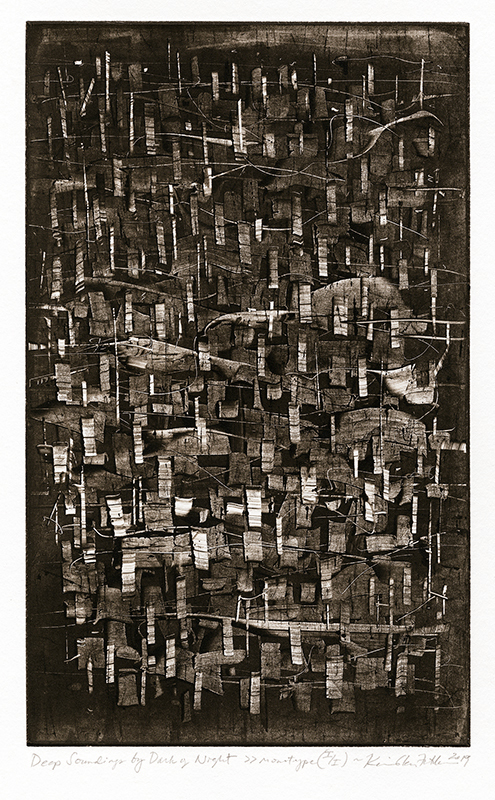 pencil titled, dated, and editioned; annotated in pencil along bottom sheet edge: "Kevin G. Fletcher - unique print in mixed bistre ink in one pass from plexi"